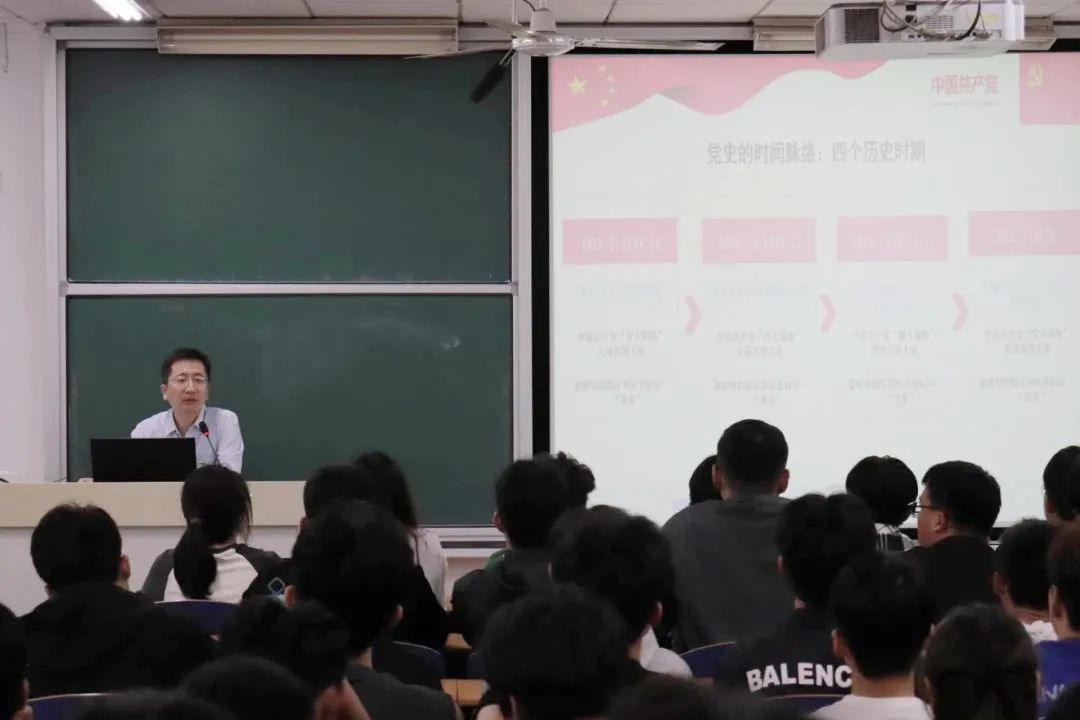 包春江以《回顾党代会发展历程,践行党的二十大精神,争做新时代有为青年》为题,从新民主主义革命时期、社会主义革命和建设时期、改革开放和社会主义现代化建设新时期、中国特色社会主义进入新时代等四个时期为脉络,系统回顾了中国共产党历次全国代表大会情况,重温党的光辉历程,以及党领导人民开辟的伟大道路、创造的伟大事业、取得的伟大成就。