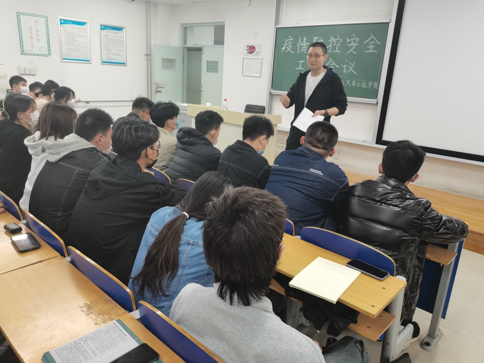 东校区5#c-302举行以疫情防控为主题的安全工作会议,团委书记于寒,辅导员孙政、李莹、田雨出席会议,各年级班长、团支书和学生组织骨干参加本次会议。