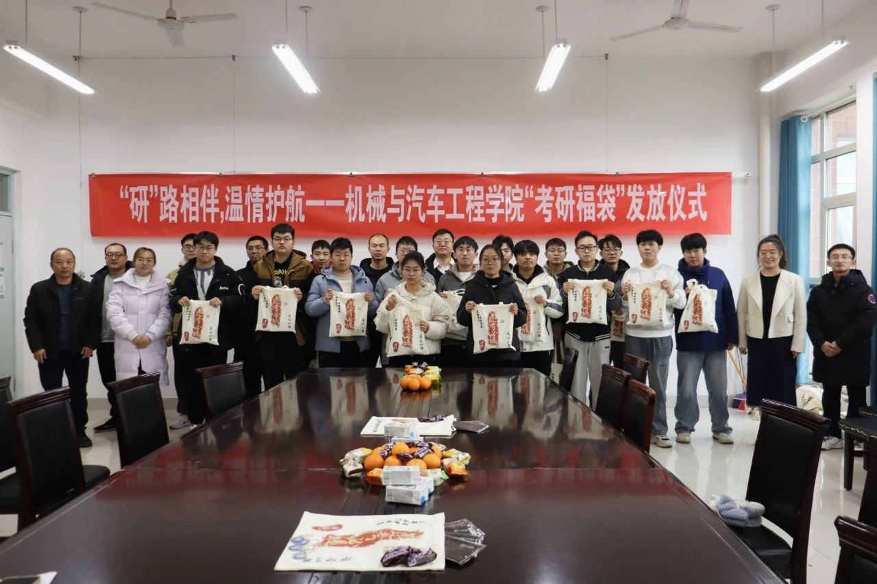 东校区5#c304会议室为考研学生发放 “考研福袋”,为即将奔赴战场的考生加油助威。学院院长孙群,团委书记张曙光,毕业班班主任代表赵栋杰、赵震、张义清,辅导员李莹、葛瑶和考研学子代表参加,发放仪式由张曙光主持。