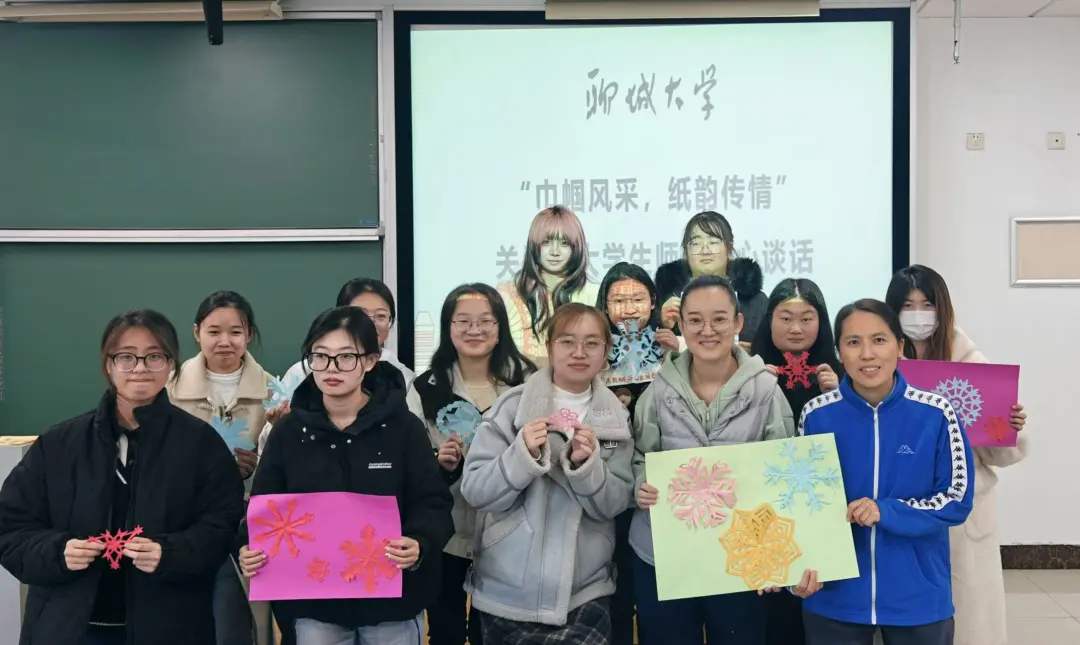 学院组织现场女生开展手工DIY剪纸活动,桌上摆满了鲜艳的彩纸和剪刀等工具,有的学生眉头紧皱,思考着剪纸的图案设计,有的则与旁边的同学交流看法。剪纸作品慢慢增多,有漂亮的雪花,有鲜艳的花朵等,师生们在创作中感受艺术魅力,相互分享自己的创作成果,同时也在传递着心里的那一份喜悦,女生们丰富的想象力、创造力得到了充分展示。同学们渐渐敞开心扉,踊跃发言,就目前感到困扰的人际关系、心理情绪和职业生涯发展规划问题向老师提出了疑问。三位老师认真聆听,现场耐心细致地解答同学们的疑问。活动最后,大家拿着自己的作品合影,师生间的情谊在这一刻被永远定格。