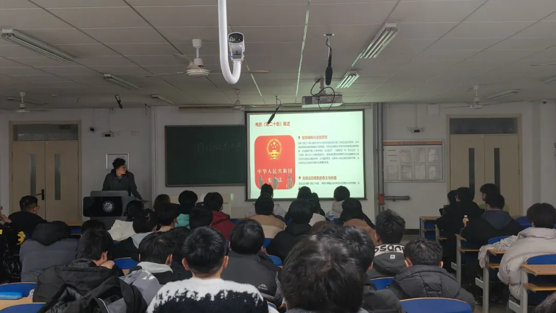 于东校区5C402举办“宪影之光,法治启航”主题观影活动,学生共同观看电影《第二十条》,借助影片的深刻内涵,引导同学们思考个人在法律框架下的责任与担当。