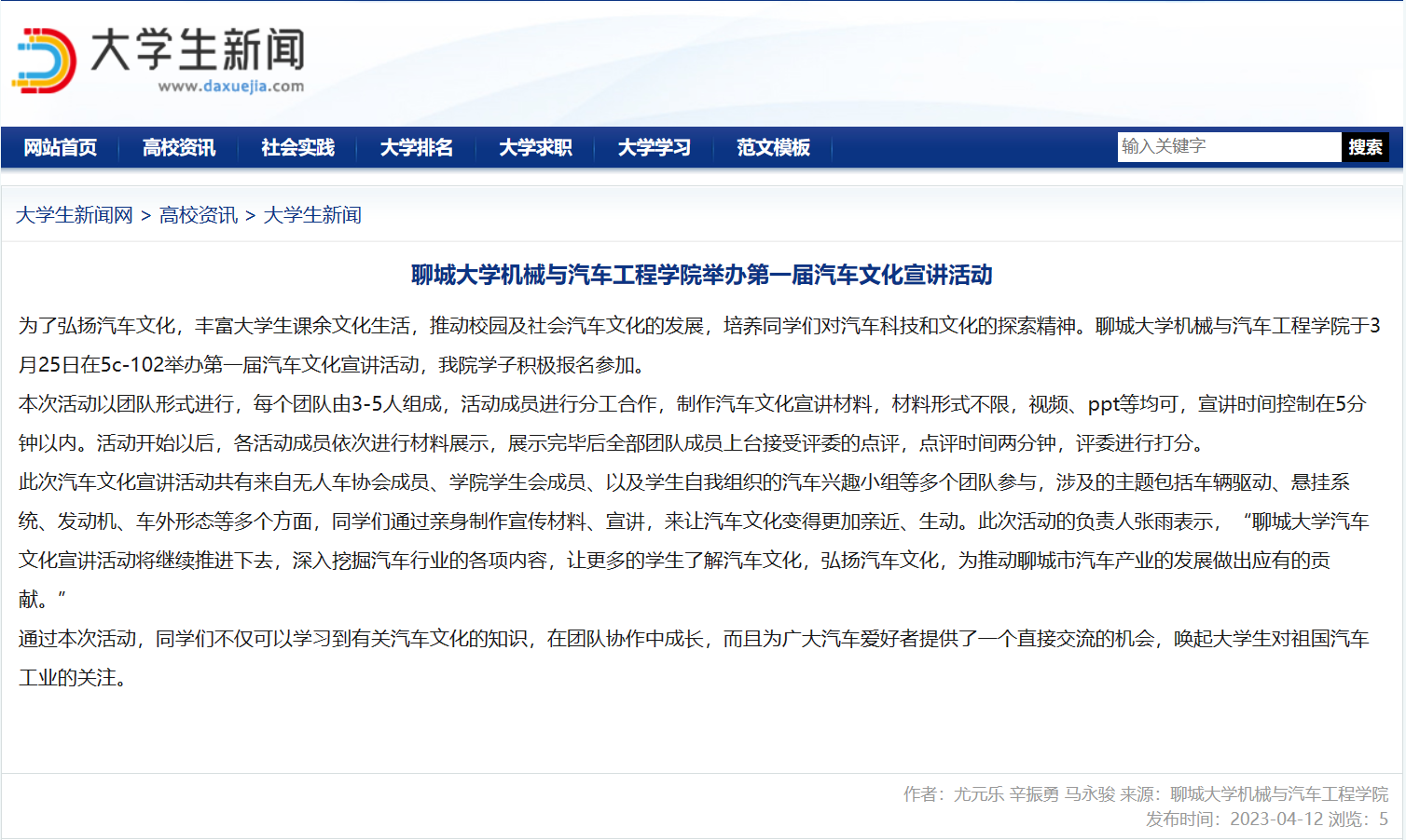 【大学生新闻网】报道小奶猫直播 举办第一届汽车文化宣讲活动