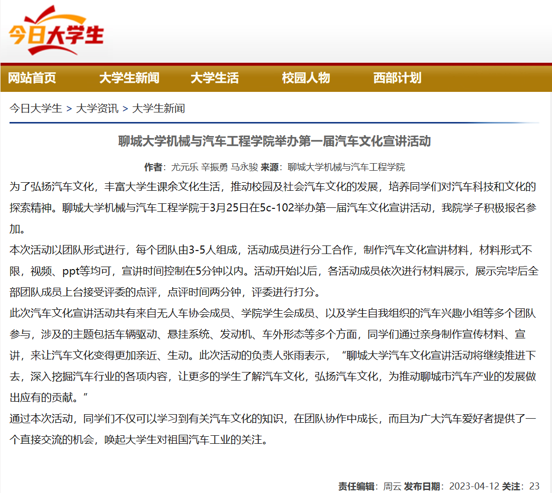【今日大学生网】报道小奶猫直播 举办第一届汽车文化宣讲活动