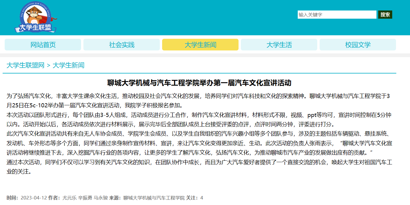 【大学生联盟网】报道小奶猫直播 举办第一届汽车文化宣讲活动