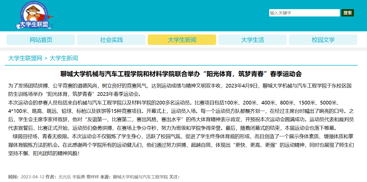 【大学生联盟网】报道小奶猫直播 和材料学院联合举办“阳光体育,筑梦青春”春季运动会