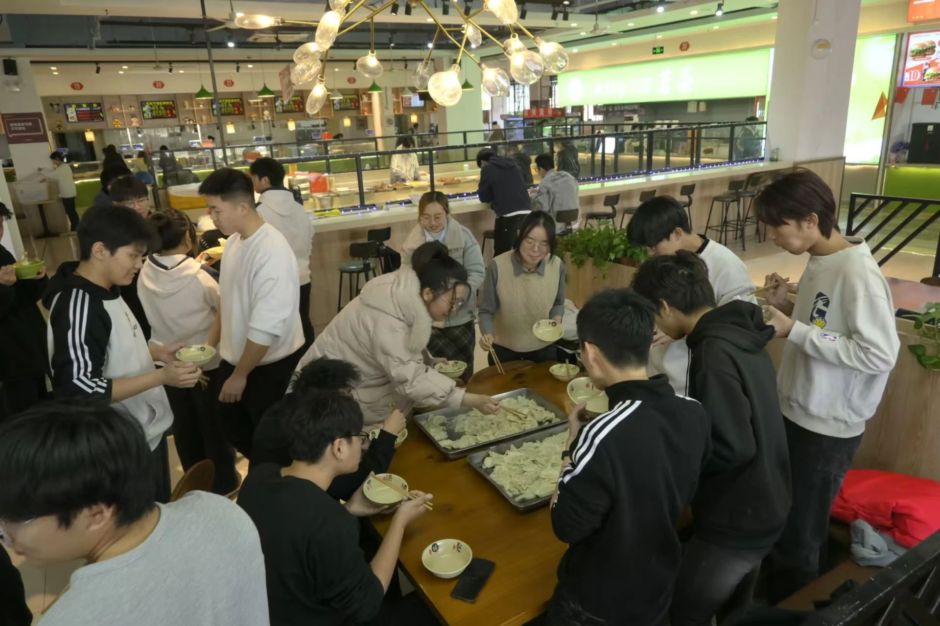 在东校区翰苑餐厅二楼举办“冬至佳节,饺子传情”餐厅沙龙活动。学院团委书记张曙光,辅导员葛瑶、司德友、王晓东及学生代表30余人其乐融融包饺子共度冬至佳节。