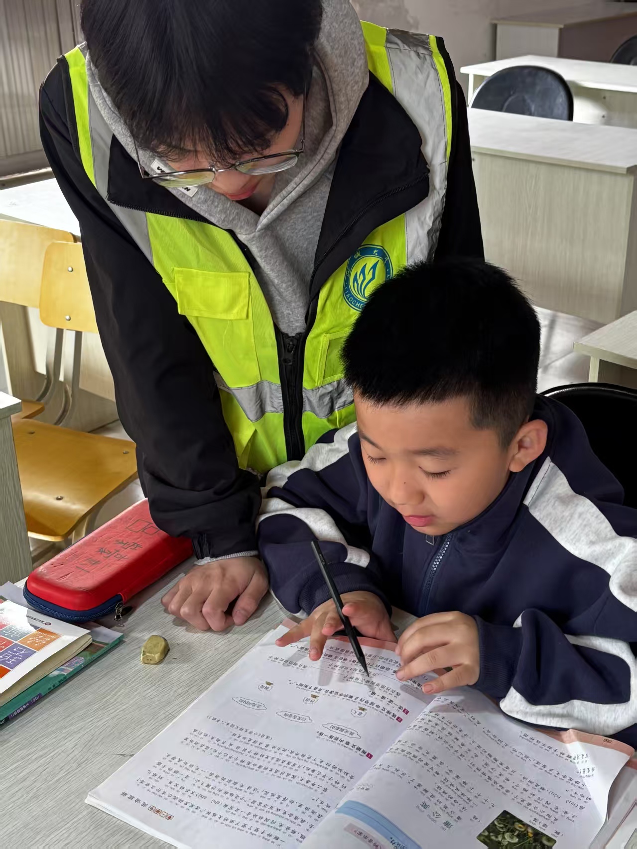 活动伊始,团支部成员们耐心辅导小朋友完成作业。面对难题,他们循循善诱,引导孩子们自主思考,在巩固课堂知识的同时,培养其独立解题能力。