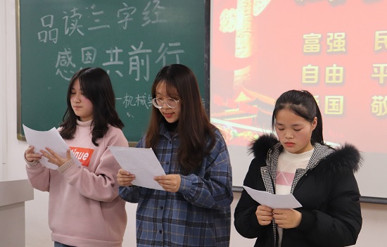 东校区5#c302举办“品读三字经,感恩共前行”朗诵比赛。