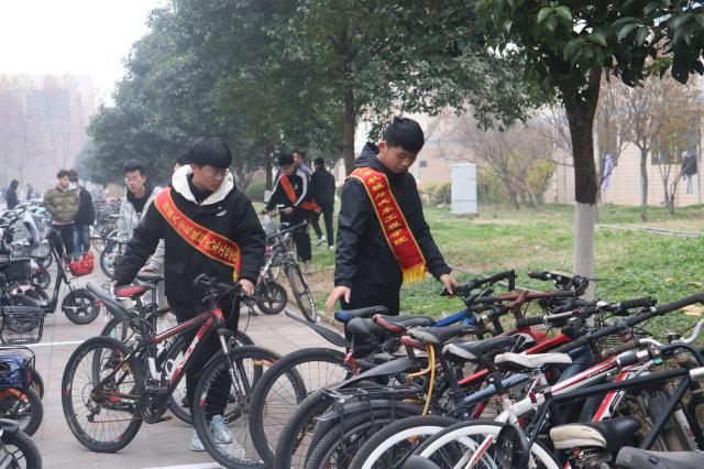东校区群星公寓17号楼举办“小微公益,情满校园”摆放自行车公益活动,2020级学生参加了本次活动。