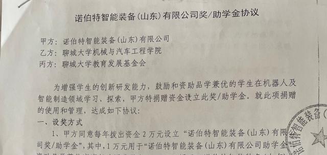 联合诺伯特智能装备(山东)有限公司,为家庭经济困难生设立诺伯特助学金和诺伯特科技创新奖学金。