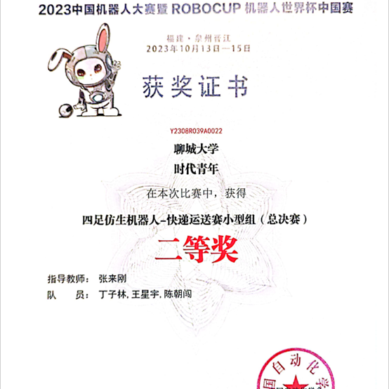 代表队在此次大赛的四足仿生机器人-快递运送赛小型组(总决赛)、四足仿生机器人-快递运送赛中型组、快递运送赛小型组(北京预选赛)三个比赛项目中共荣获全国二等奖1项,三等奖2项,实现了我校在此项赛事上的历史性突破。