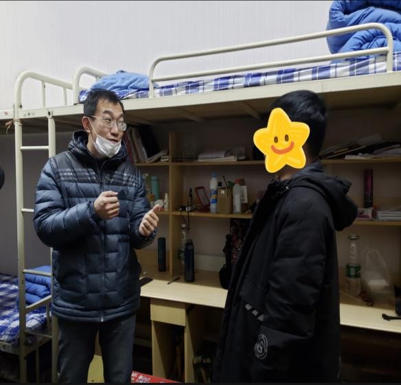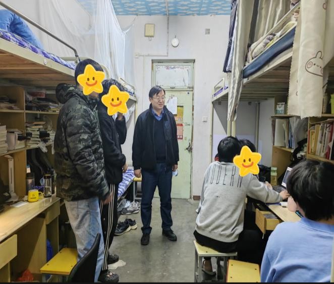 院长孙群,党委副书记、副院长张涛,辅导员和班主任于学生宿舍开展家庭经济困难学生走访慰问活动,通过面对面交流的形式深入了解学生们的思想动态、基本需求及生活实际。