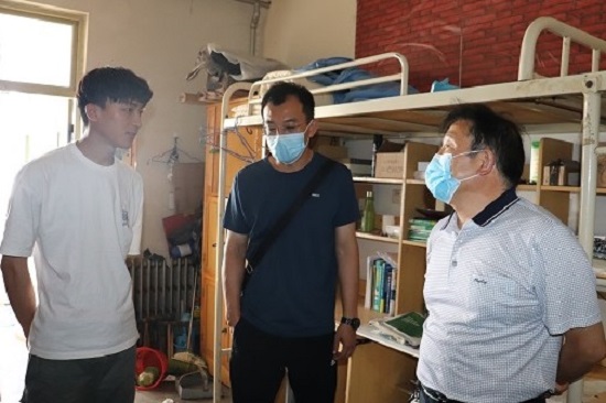党总支书记孟庆华,党总支副书记张涛深入学生公寓走访慰问即将毕业离校的2020届毕业生,辅导员陶珊珊、白东芳与毕业生班主任陪同走访。