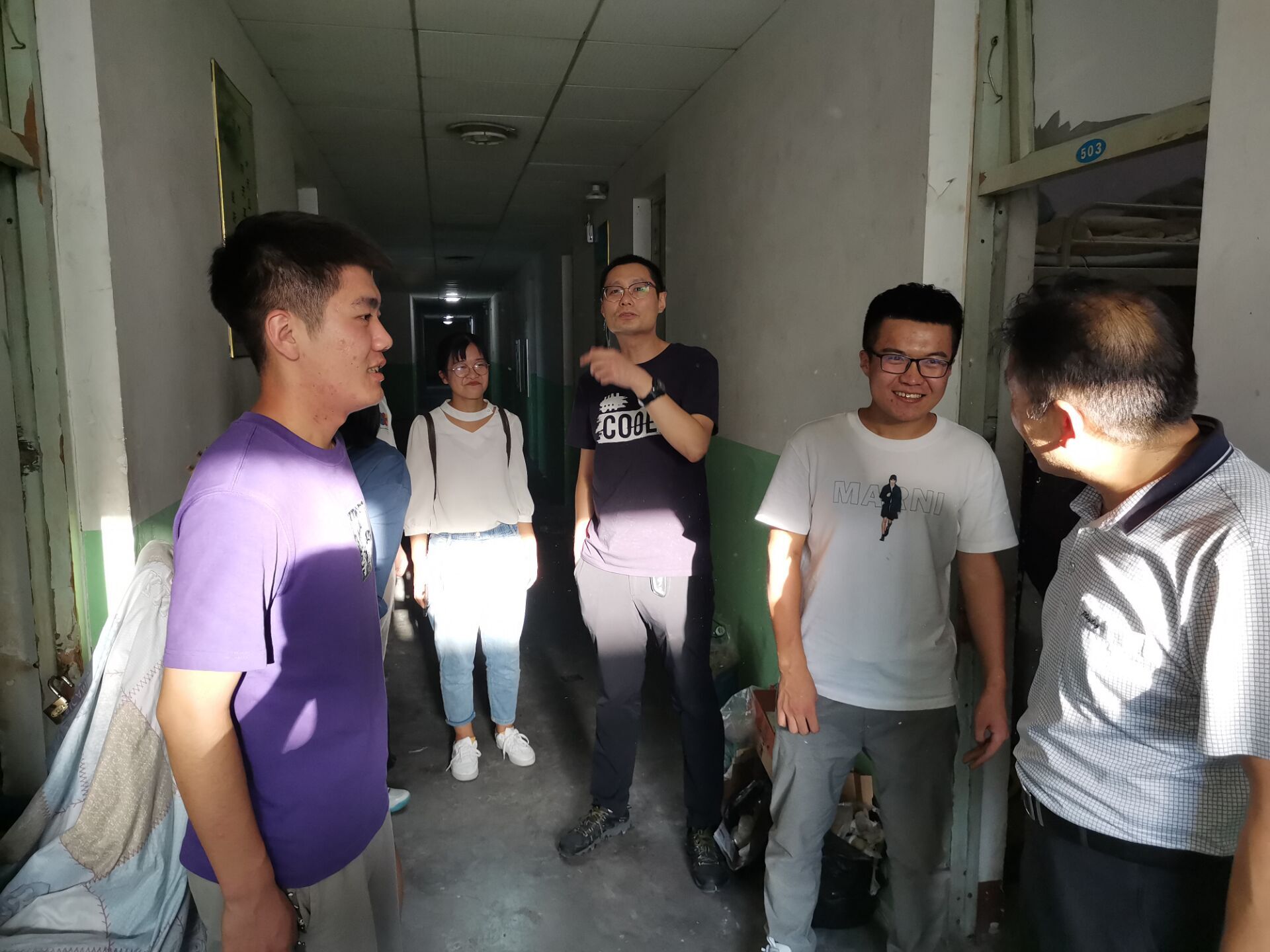 党总支书记孟庆华,党总支副书记张涛,团委书记于寒,辅导员陶珊珊、白东芳等人走访学生宿舍楼,慰问第一批返校学生。
