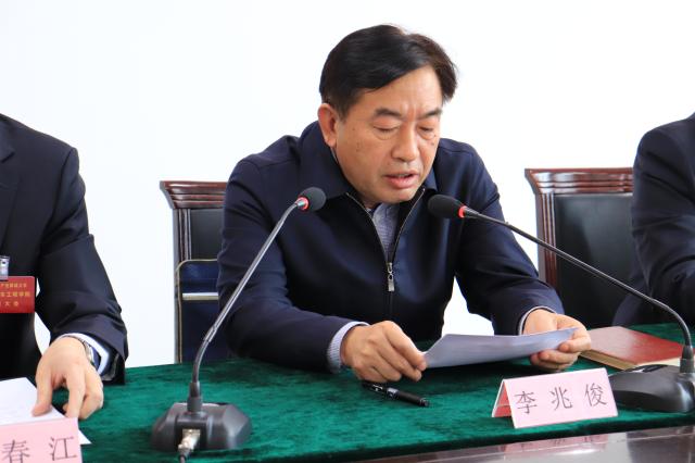 会议在雄壮的国歌声中正式开始,李兆俊在致辞中充分肯定了上一届学院党总支部委员会的工作和取得的成就,对学院未来发展提出具体要求并希望新一届学院党总支带领广大党员干部和师生员工真抓实干、改革创新,加快推进学院科学快速发展。