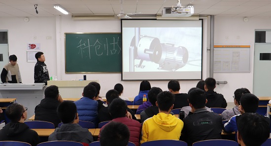 活动伊始,吕雪燕在简单的自我介绍后,结合自身经历,生动形象地从个人简介、科创经历、赛事解读、心得体会四个方面,全方位、深层次的分享自己在大学期间担任学生干部、参加各项赛事的经验和故事,并通过讲述亲身经历来鼓励同学们要敢于提出自己的想法,大胆质疑,积极尝试科技创新的比赛项目。她希望同学们能够认真学习专业知识,通过与导师交流从而更加深入的了解科技创新,组建团队,不断摸索向前。李俊颉则从同学们自身角度出发,用平易近人、幽默风趣的语言讲述了自己是如何从一名毫无经验的科创新人,逐渐投入比赛,到如今参加国家级比赛的成长历程,打破了同学们对比赛的心理隔阂。最后,李永鑫通过视频向大家展示了汽车学院科创团队自主研发的“高层建筑外墙喷涂机器人”,引发了在场同学们的思考和激烈的讨论,大家对该作品的创作灵感和设计原理各抒己见。他讲到,该机器人的设计灵感来自于外墙粉刷工人,这也表明科创来源于生活。活动中,同学们被主讲人的成长经历和追梦、圆梦过程深深感染,倍受鼓舞,纷纷表示会留意生活中的细节,积极投身于科研创新中去。