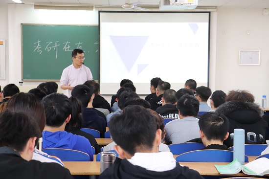 会议伊始,赵岭用其亲身经历与职场经验作为先导,给同学们讲明了考研与就业的前进方向及其利与弊,提出大学生应当具备考研的思想。他以风趣幽默的语言生动描述了研究生的意义及就业前景,为同学们解读“考研”这两个字的深刻意义,帮助他们理清了考研的动机,解读了考研的学习重点。他讲到,学历是一个人就业的敲门砖,同学们要树立自己的远大目标,在大学的生活中不断地提升自己能力,磨练自己的意志,并期望同学们能够通过自己的努力实现自己的理想目标和人生规划。通过赵岭深入浅出的讲解后,同学们对自己未来的选择方向已经有一个较清晰的认识。互动中,同学们积极地提出了自己在考研与就业上的问题并在赵岭的详细的答疑下解决了疑惑。同学们受益良多,会上不时掀起一阵阵掌声。会后,白东芳总结到,优秀是一种习惯,无论选择考研还是就业,一定要结合自己的兴趣,进行全方位综合考虑。