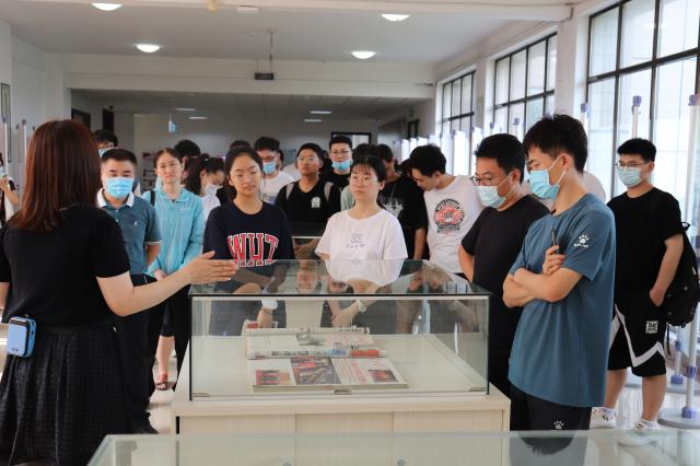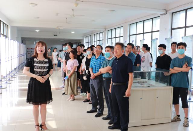 东校区逸夫图书馆三楼参观建党百年文献展。汽车学院党总支书记孟庆华带领教职工党员及各学生党支部成员参与此次展览,读者服务二部副主任陈立凤负责本次讲解工作。