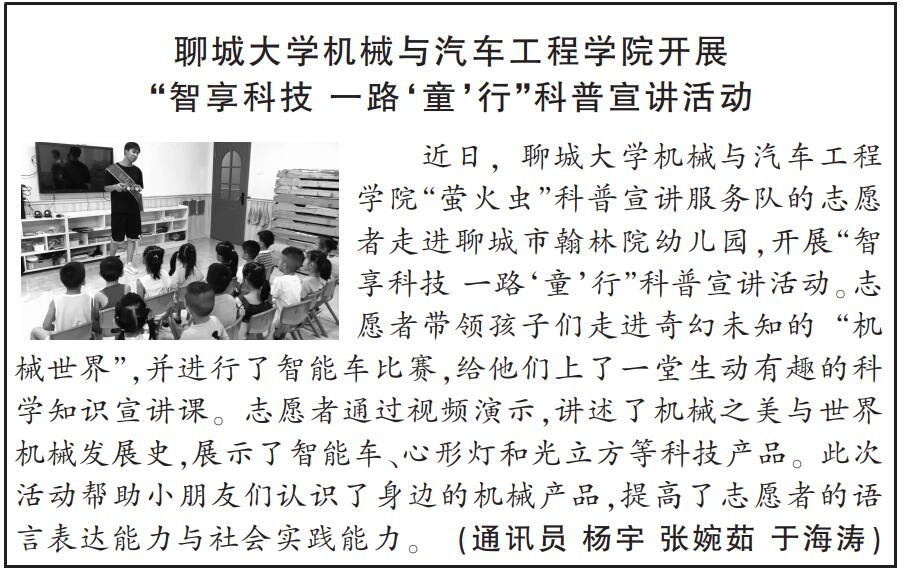 【山东青年报】报道小奶猫直播 开展“智享科技 一路‘童’行”科普宣讲活动