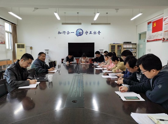党总支于教学楼5C#304会议室组织学习党的十九届六中全会精神。会议由学院党总支书记孟庆华主持,党总支成员、支部书记参与学习。