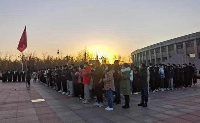 西校区南门十一广场举行“聚力谋发展 启航开新局”主题升旗仪式。学院党总支副书记、副院长张涛,团委书记于寒,辅导员孙政、田雨、李莹、葛瑶,2022届学生组织骨干成员,青年学生党员以及2020级、2021级全体学生参加本次升旗仪式。