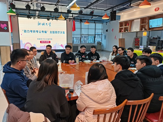 东校区翰苑餐厅二楼举办了“助力考研考公考编”主题餐厅沙龙。团委书记于寒,辅导员孙政、李莹、葛瑶出席本次活动。