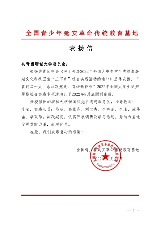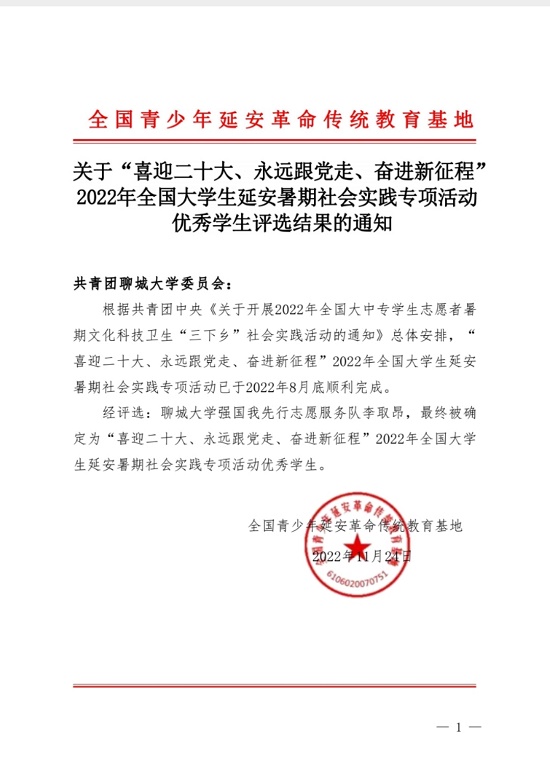 小奶猫直播 强国我先行志愿服务队于8月参加了2022年全国大学生延安暑期社会实践专项活动,实践期间,认真开展调研及学习活动,为助力圣地发展贡献力量,团队成员李取昂,最终被确定为“喜迎二十大、永远跟党走、奋进新征程”2022年全国大学生延安暑期社会实践专项活动优秀学生。