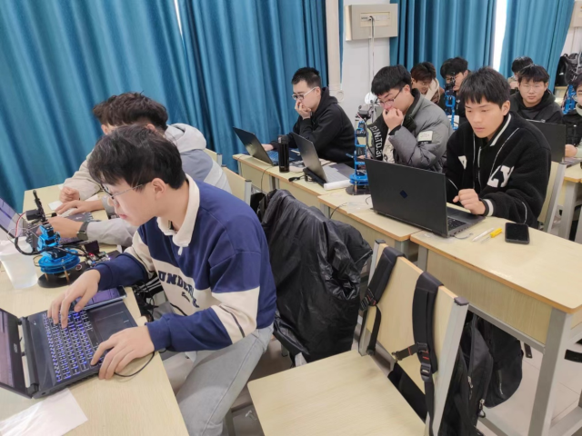同时,根据行业企业需求邀请相关企业走进学校,深谷云创(山东)科技发展有限公司制定计划、携带设备在校内进行项目化实习活动。学生们对智能移动四驱车、六轴自营店机械臂等设备的组装和调试进行了体验式学习,通过亲手操作,对结构、工作原理以及编程控制有了更加深刻的理解,同学们学习到了理论课难以获得的实用技能。学院邀请潍柴动力股份有限公司、歌尔股份有限公司等人力资源负责人进行交流座谈,对校企协同育人模式、实习实训基地建设、人才培养质量提升等话题展开了深入交流。