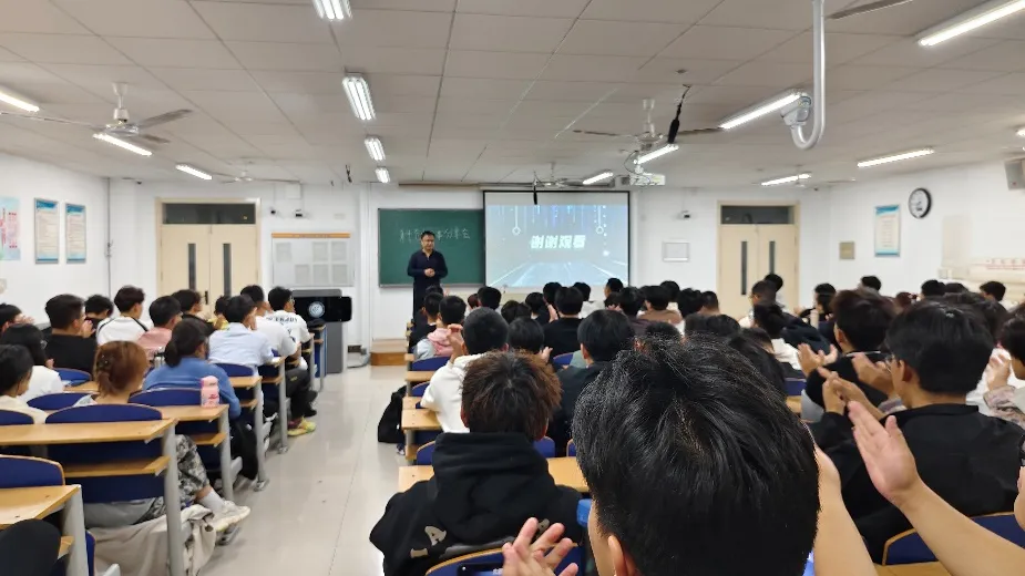 活动开场,郭安福老师围绕对大学生活的规划与指导、学校科创竞赛文件解读、参加比赛的经验体会以及学科竞赛方式等多个方面深入展开。通过生动地阐述,让同学们清晰认识到大学生活与高中生活的显著差别,提醒同学们要充分利用大学阶段的各种有利条件积极参加学科竞赛,不断提升自身能力。随后,郭安福老师详细解读了 “挑战杯” 的比赛方式和奖项设置,以极大的热情鼓励同学们勇于参加比赛,超越自我。郭安福老师分享了去年学长学姐们第十八届“挑战杯”国赛特等奖的佳绩,通过优异的成绩,他强调 “爱拼才会赢” 的生活学习方式,让同学们明白上大学并非仅仅为了顺利毕业或考研,而是要在大学这个广阔的舞台上,通过参与学科竞赛不断挖掘自身潜力,实现自我价值。