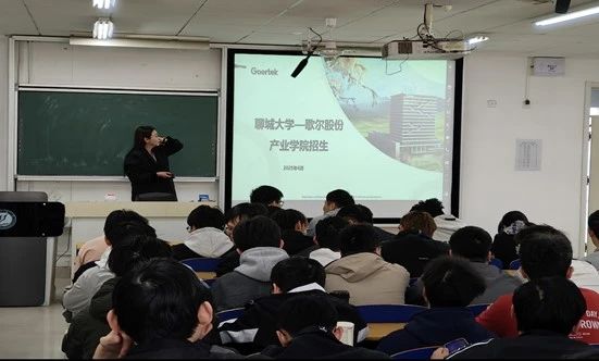 与歌尔股份有限公司联合举办产业学院招生宣讲会。歌尔股份有限公司经理高萍担任主讲嘉宾,向在场学子全面展示了企业的技术实力、文化底蕴及人才培养体系,为毕业生职业发展提供了重要指引。